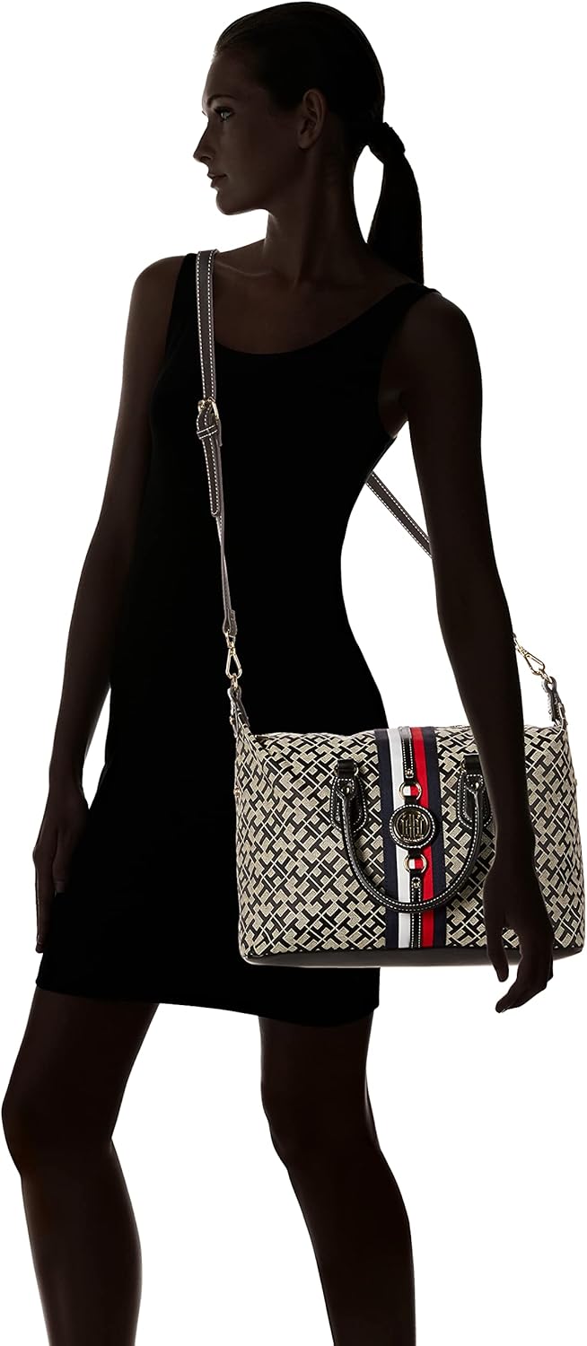 100% Cotton_Polyester Imported Polished and perfectly sized with an easy silhouette and space for keeping your essentials organized on the go, Tommy Hilfiger’s Jaden small crossbody satchel is the everyday bag you’ve been searching for. THE PERFECT FIT: Designed with both top handles and a removable, adjustable vegan leather crossbody strap, Tommy Hilfiger’s Jaden crossbody bags for women keep you comfy on the go and leaves hands free for the important things (like a latte). TRAVEL LIGHT: Clever design gives Tommy’s Jaden handbags for women an ultra-lightweight feel, plus interior compartments help keep small essentials organized. SIMPLY ESSENTIAL: From work to weekend brunch, stay organized in Tommy style with this bestselling, small crossbody purse. TOMMY STYLE, TO GO: This must-have women’s handbag is polished off with the label’s signature logo stripe and glossy gold tone hardware featuring the TH medallion.