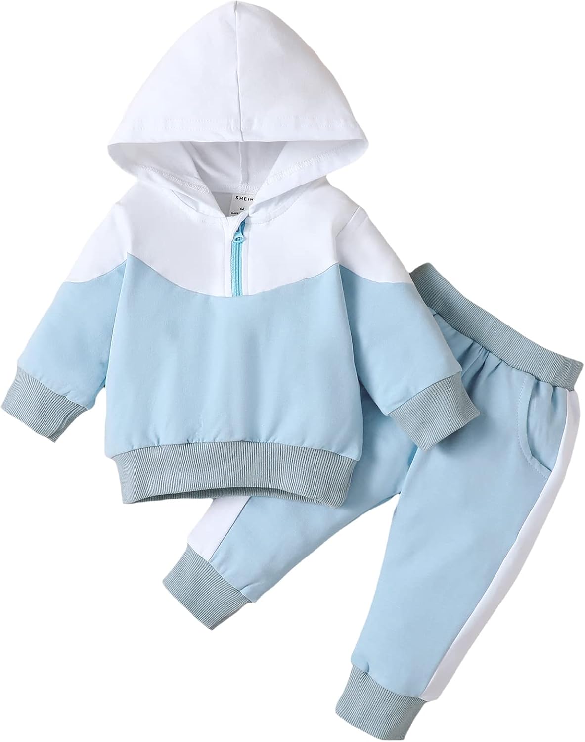 2PC Newborn Baby Boy Girls Clothes Sweatsuit Long Sleeve Hooded Zipper Tops Pants Outfit Fall Winter Sets