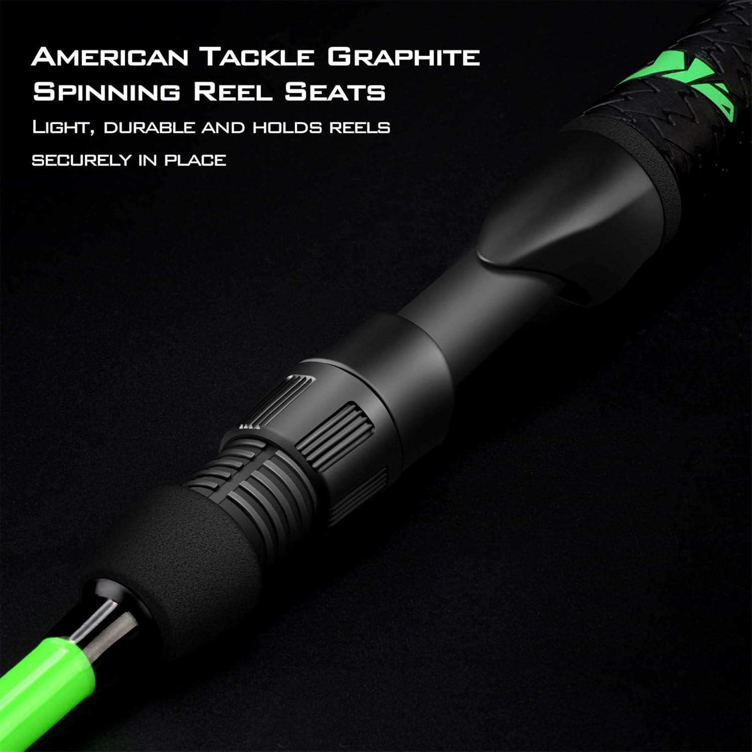 ULTRA-SENSITIVE KastFlex IM7 CARBON BLANKS - KastKing Resolute fishing rods are designed to deliver tournament performance at a value price. Sensitive and powerful IM7 KastFlex carbon rod blanks give you a light rod ranging from ultra-light to heavy powers in 4’6” to 7’6” lengths. With KastKing’s Power Transition System, these incredible performance rods that feel like 1-pc rods are designed for all freshwater species and also fishing pole models for most inshore saltwater fishing rod needs. AMERICAN TACKLE MICROWAVE AIR GUIDES – American Tackle has won numerous fishing tackle industry awards for their innovative MicroWave Air Guide Systems. These patented new fishing line guides improve casting distance and accuracy. It’s why KastKing uses them on all Resolute fishing rods. The stainless-steel frames and Duralight top guide perform great with all fluorocarbon, monofilament and braided lines. Reach new distances with KastKing Resolute fishing rods and AT Microwave Air guides! AMERICAN TACKLE REEL SEATS - A fishing rod is only as good as its components, and if your fishing reel doesn’t stay firmly in place, you’ll never be satisfied. KastKing insures solid reel placement by using only American Tackle, Bravo 2-pc reel seats on both casting rod and spinning rod models. These two-piece reel seats are light, durable and hold reels securely in place under the pressure of powerful fish. Casting fishing rod models include a trigger for improved performance and control. GOLF-STYLE SUPERPOLYMER GRIPS – SuperPolymer handles and fighting butts are comfortable, durable and exceptionally slip resistant giving you maximum control over your fishing pole in all conditions. These performance handles are normally only found on fishing rods costing much more, but KastKing includes them on all Resolute spinning and baitcasting rods to deliver even more quality and value in this fishing rod performance series. 27 DIFFERENT MODELS FOR ALL FISHING CONDITIONS – If you need a freshwater rod fishing for crappie, or as a bass rod, trout rod, walleye fishing rod, or targeting pike, salmon or steelhead, there are Resolute fishing poles made for you. If you love inshore saltwater fishing, you’ll find a fishing pole model with the right length and action that you can count on. You’ll be amazed at the exceptional value of KastKing fishing rods.