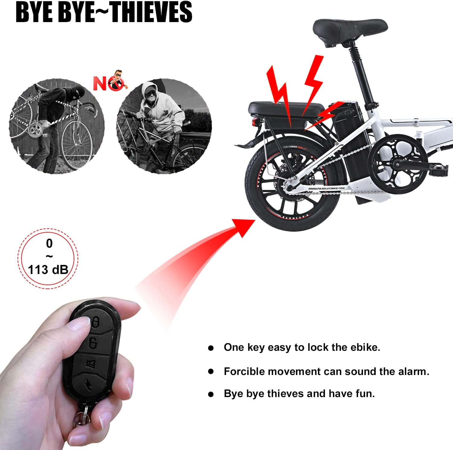 Paselec 14inch Folding Electric Bike Ebike for Adults and Teenagers, Peak 500w Motor 48v 10.4Ah Mini Commuter Bike with Anti-Theft Vibration Alarm System