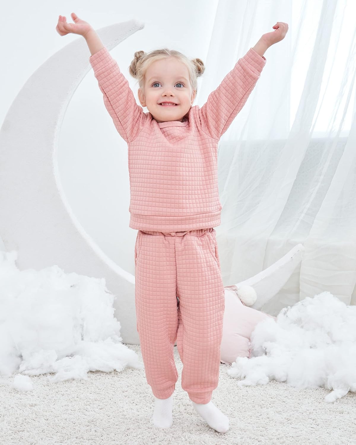 cotton blend Snap closure Hand Wash Only Material--- Cotton fabric for baby girls clothes set. Soft and breathable, skin friendly for baby daily wear, very cozy and free. Great gift for your little one. Feature of Baby Girl Outfits---Ruffled layered shoulder, side pocket pants with elastic waist, matching bowknot headband, 3 pcs Spring Fall Winter clothes for baby girls. Unique Designs---Delicate little heart pattern tops with matching pants, so sweet, all make your little one get lots of compliments with this adorable clothes set. Size Options---baby clothes girl 0-3 months, baby girl clothes 3-6 months, baby girl outfits 6-12 months, 12 18 months girl clothes, toddler girl clothes 18-24 months Occasion---Adorable baby girl gift set, great for daily wear, outdoor wear, family gathering, party, celebration, church, photo shoots, birthday, etc.