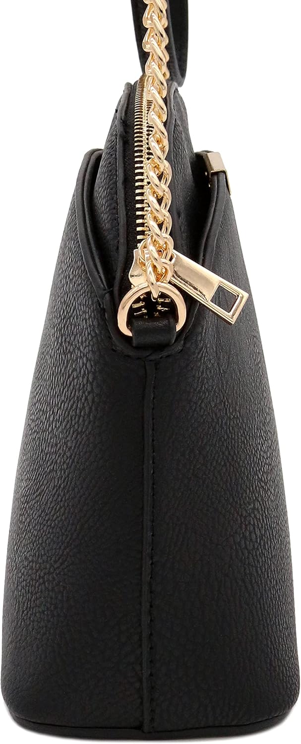 Faux Leather Small Dome Crossbody bag with Chain Strap