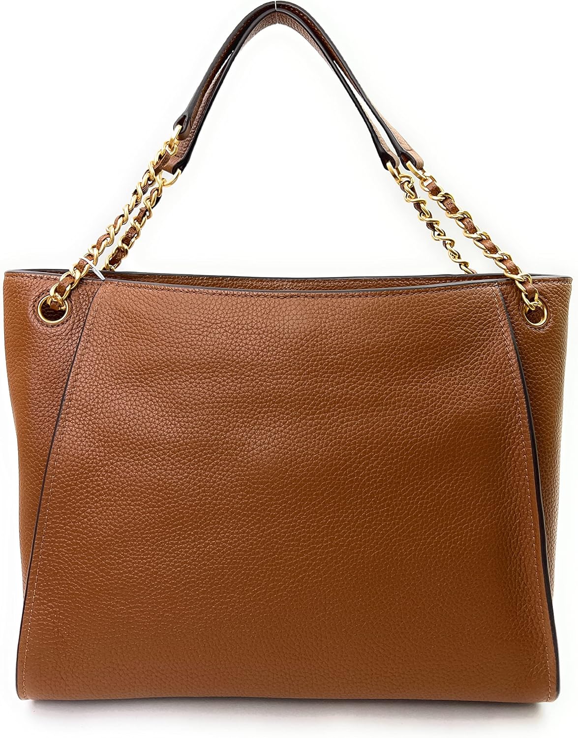 Leather Imported Tory Burch Women's Britten Small Slouchy Tote in Pebbled Leather (Moose) With Gold Tone Hardware Interior Features Custom Tory Burch Fabric Lining, 1 center zipper compartment, 1 Zip Pocket, and 1 Slip Pocket When used as a Single Strap, it has Approximately 13 Inches Drop and 8 Inches Drop when used as a Double Strap Approximate Measurements: 11.75 Bottom 14” Top in L x 9 in H x 6 in W