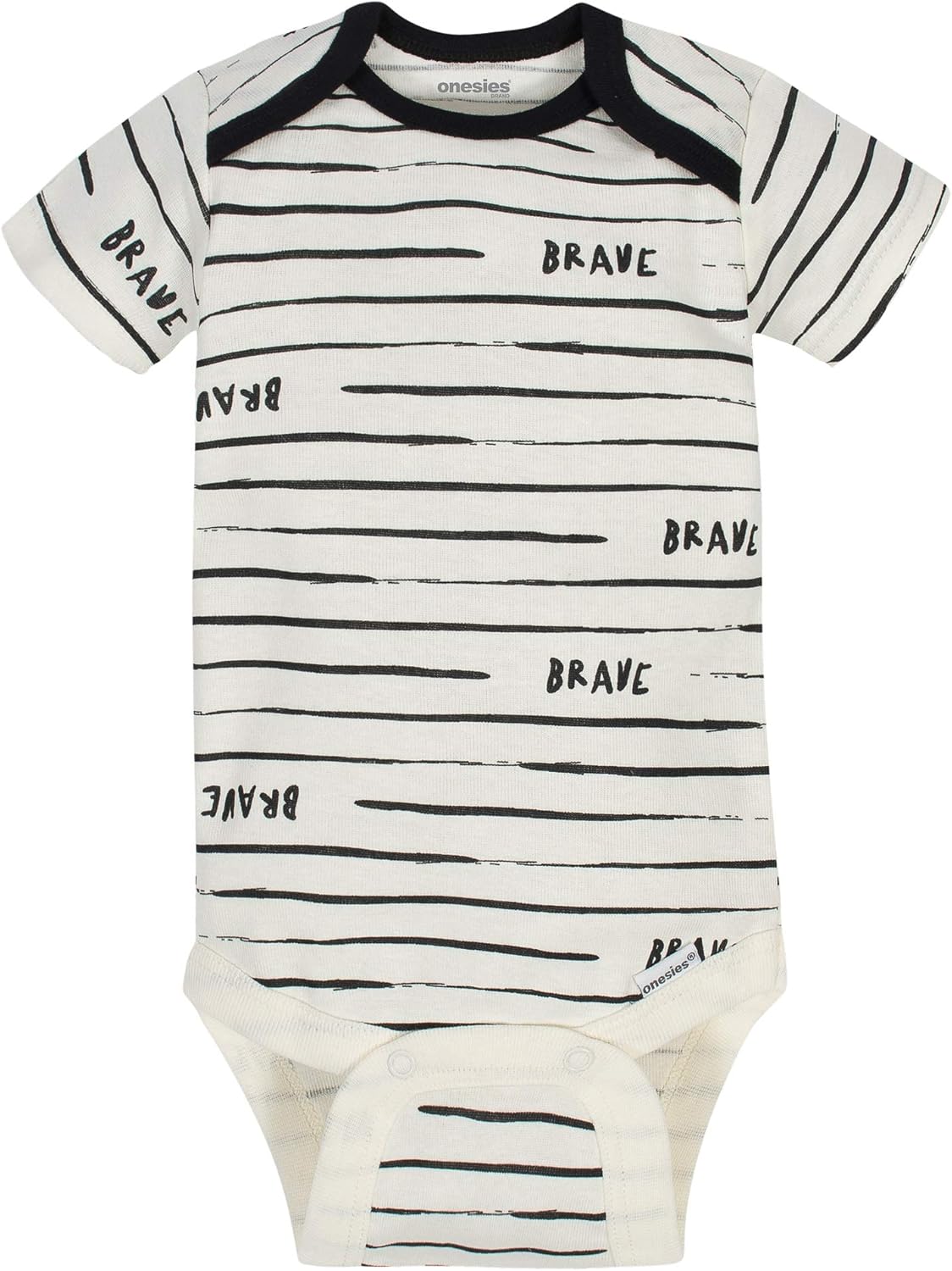 100% Cotton Imported Snap closure Machine Wash Includes eight short sleeve Onesies Brand bodysuits Made with soft, breathable cotton rib that's gentle on senstive skin. Features expandable lap shoulder necklines & high-positioned bottom snaps.