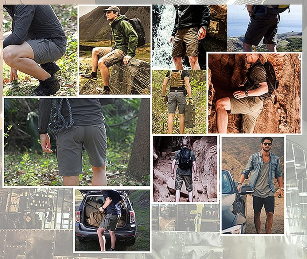 YAXHWIV Mens Tactical Shorts 11" Waterproof Cargo Shorts for Men Hiking Fishing Breathable Quick Dry Regular(NO Belt)