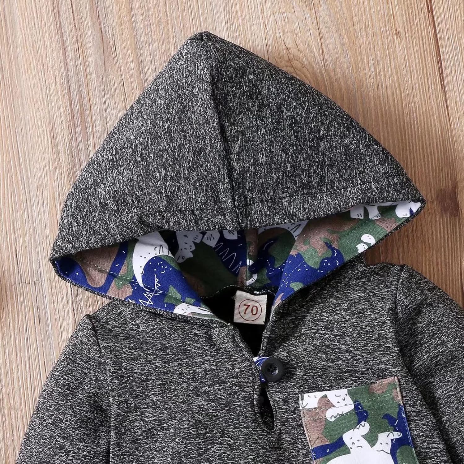 95% Cotton, 5% Spandex Imported Pull On closure Machine Wash ✯BREATHABLE FABRIC: Our baby boy's clothing is made of 95% cotton and 5% spandex fabric and is lined with warm fleece. The extra layer of fleece inside the hoodie keeps your child warm and comfortable in the cold fall and winter. ✯SIMPLE DESIGN: Cute hoodie sweatshirt designed with extra pocket to store little toys, and button on the neckline to make it easy to wear on & take off. The dinosaur pattern is cute and funny and your kids will love the baby boy winter clothes. ✯GREAT GIFT IDEA: Our infant boy clothing is great for Christmas gifts, New Year gifts, baby shower gifts, birthday gifts, Thanksgiving gifts. Meanwhile, it also can be dressed up for a professional photoshoot.