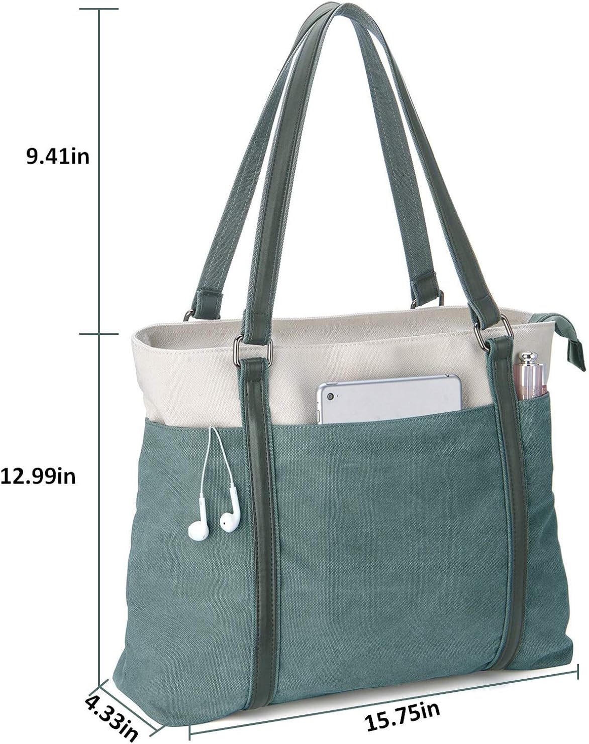 Please note: This product is available in two options. The one priced at 29.89 has a fully padded computer compartment, while the other one priced at $25.99 does not. Imported Lightweight Canvas Fabric Material and Durable PU leather handles. This tote bag is casual, strong enough to carry your laptop. With foam padding for bump and shock absorption to be shockproof and protect your laptop. 15.75"L*4.33"W*12.99"H,Weight:Only 1.5lb, fits 15.6 inch laptop, computer or tablet. separate storage space can hold your things orderly,easy to find like laptop/books/wallets/cellphone/passports/cards/cash/office supplies/magazine/umbrella and so on Simple and stylish design,wide long shoulder strap,easy to wear on your shoulder,great as laptop bag,handbag,work school tote bag,casual shoulder bag,travel bag.