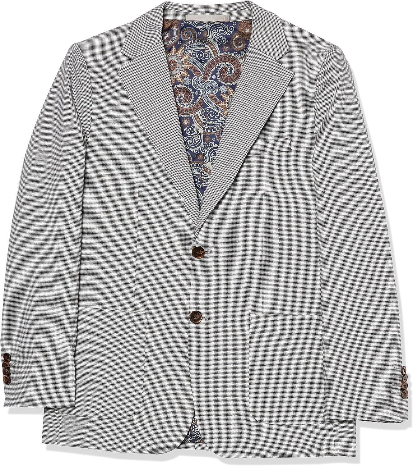 65% Polyester, 33% Rayon, 2% Spandex Imported Button closure Hand Wash Only Jacket features peak lapel and two-button closure Slim fit pant featuring front slant pockets Pant features adjustable waistband for a nice custom fit Ready to wear with hemmed bottom Soft fabrics for ultimate comfort Show more