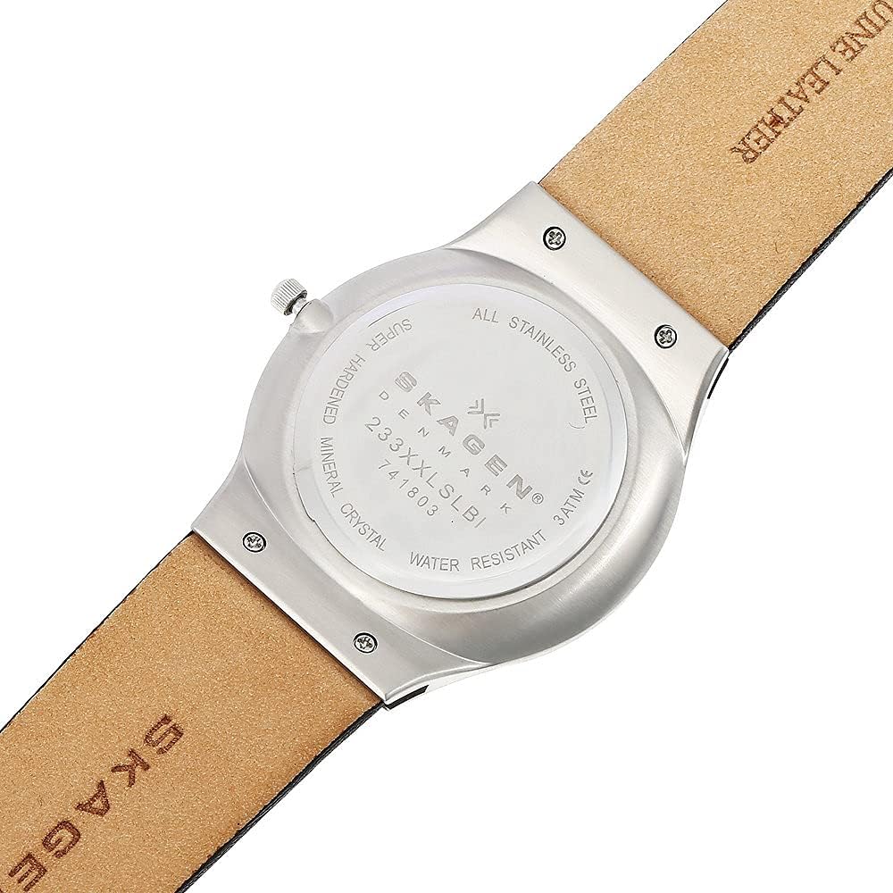 From the coastlines of Skagen to the architecture of Copenhagen and a celebrated fashion scene, Denmark embodies a special kind of energy: modern, minimalist, and playful. In the moment— with an appreciation for nature and the wild world around us. The Skagen Grenen aesthetic is simple, and works with every style. Slip on one of our men's watches while you're getting ready for any occasion and you'll see your refined style take on a whole new level of sophistication. Featuring a 37MM Round stainless steel case, with a black dial. and a Three Hand Date display Black 22MM leather band with a Single Prong Strap Buckle closure Water resistant up to 30m: Will withstand splashes in water