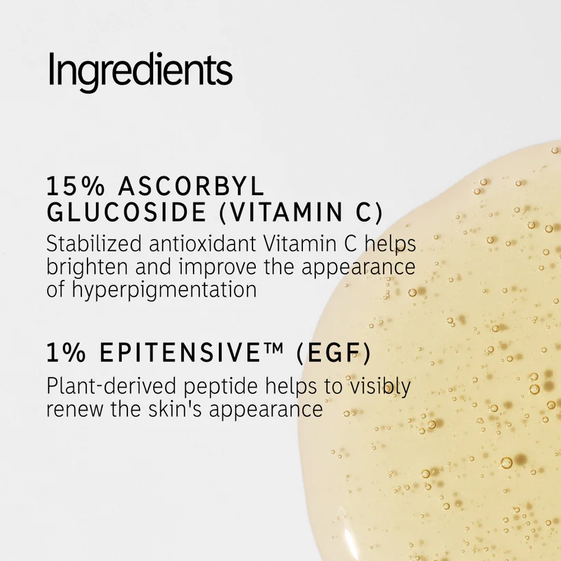Powered by 15% ascorbyl glucoside (a stable form on vitamin C), this brightening formula minimises the look of uneven tone, dark spots and pigmentation. Plus, this ingredient is rich in antioxidants, which protects your skin from environmental aggressors (AKA UV and pollution). The other hero in this potent potion is a peptide known as Epidermal Growth Factor, or EGF for short, which improves the look of elasticity for a firmer-looking visage. Dewy, plump results incoming...