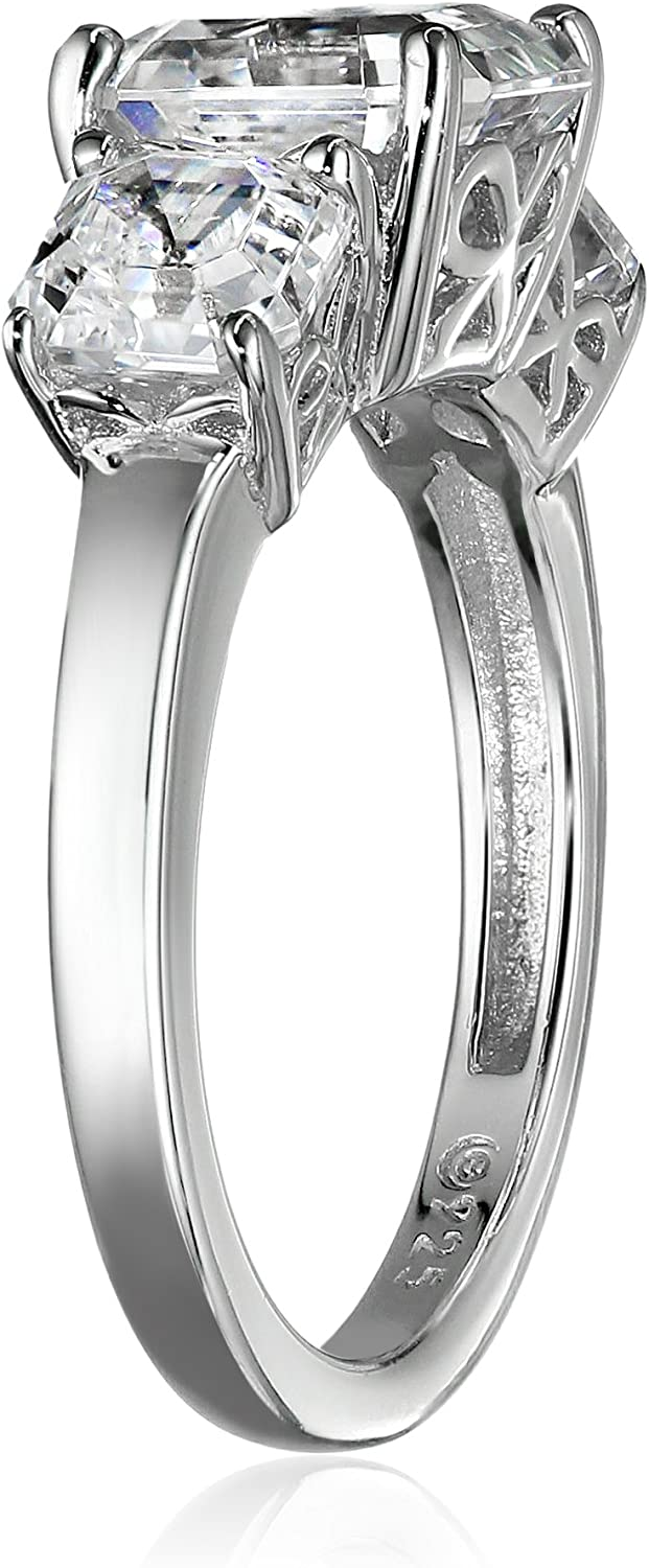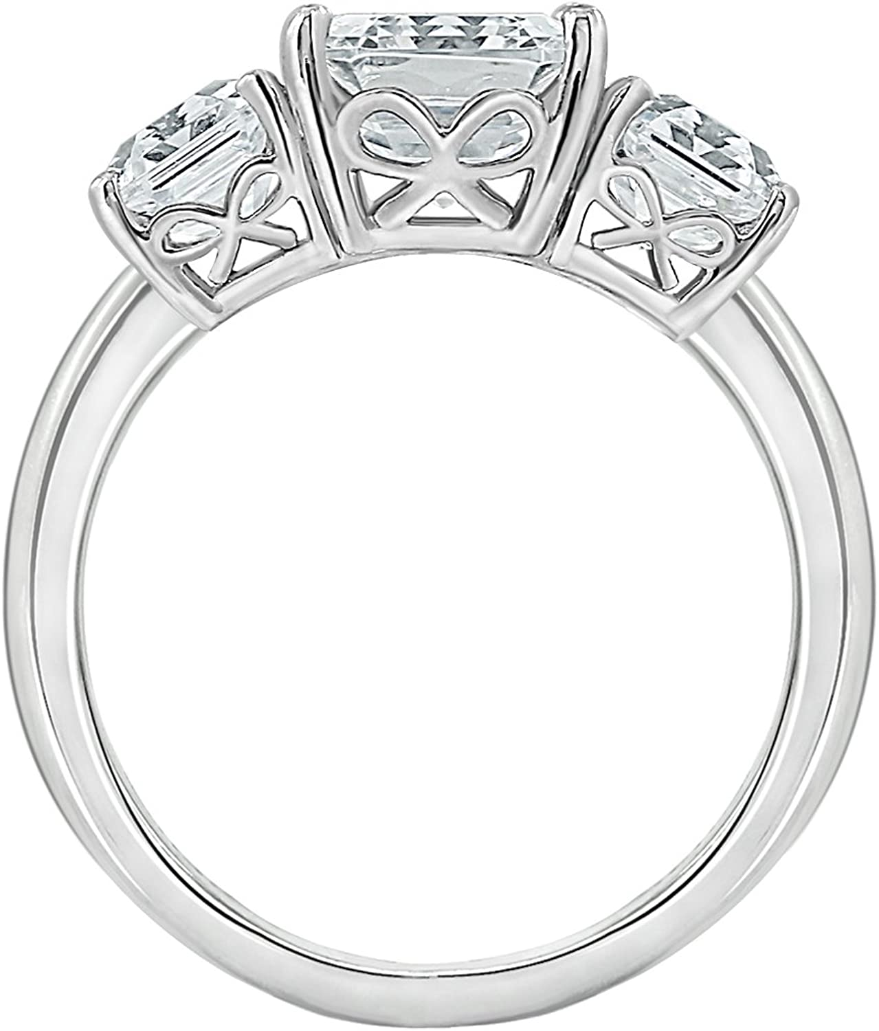 BERRICLE Sterling Silver 3-Stone Wedding Engagement Rings Princess Cut Cubic Zirconia CZ Anniversary Ring for Women, Rhodium Plated Size 4-10