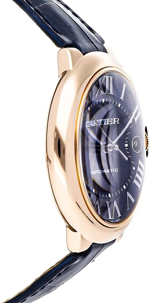 Blue dial. 18kt rose gold case with a blue (alligator) leather band. Automatic movement. 30 meters / 100 feet water resistance. Fixed bezel. Fold Over clasp. Case size 42 mm x 13 mm. Cartier wgbb0036 Ballon Bleu Watch.