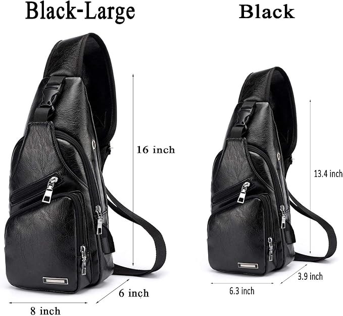Material:This leather sling bag is made of cowhide genuine leather, which is durable and fashionalble.This bag use a high-quality vintage metal zipper, which is smooth and durable Dimension: 7.48in L X 3.15in W X 13in H Weight:0.8kg Large capacity structure: This shoulder bag has many pockets and it has a very large capacity to hold mobile phone, wallet, small book, tissue, lighter and water bottle. It has large space for your personal belongings. Multipurpose use: This stylish chest bag can used as a crossbody bag, shoulder bag, sling bag, business messenger bag, business wallet/purse, fit very well for adult men or women, boys, girls. perfect for busienss, outdoor, travel, camping, shopping, leisure and work. medium size, easy to put it in you backpack, luggage bag or suitcase when you travel. We promise best customer service. If you have any problem about the item, Please do not hesitate to contact us.